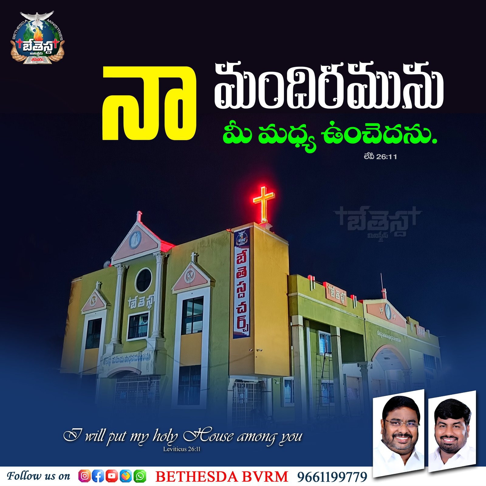 Welcome to the official website of our church BETHESDA BVRM, an independent congregation based in Bhimavaram, Andhra Pradesh, India. We are a community of believers who strive to walk in faith, grow in God’s Word, and be a light to the world. As the pastor of this church, it is my joy and privilege to share God’s love, guidance, and encouragement with you.